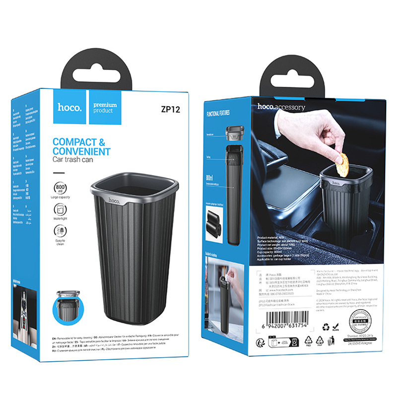 Фото Автомобильный контейнер для мусора в подстаканник Hoco ZP12 Black на onecase.com.ua